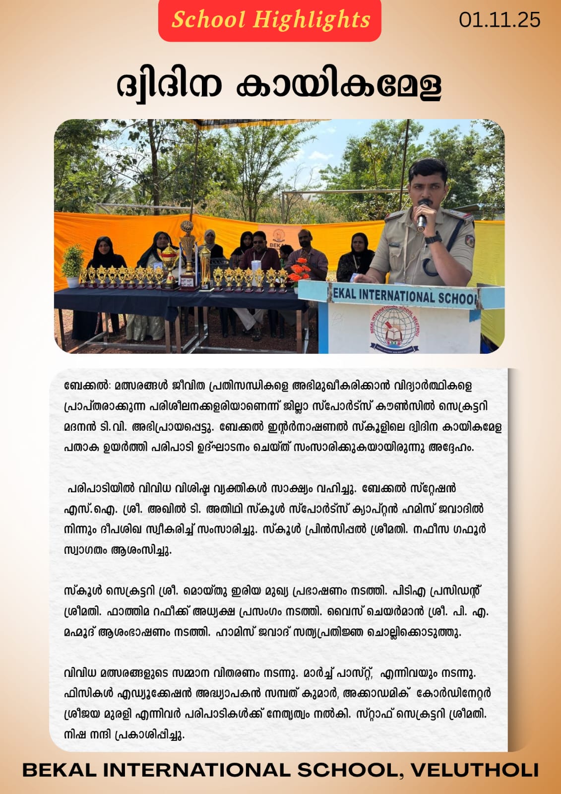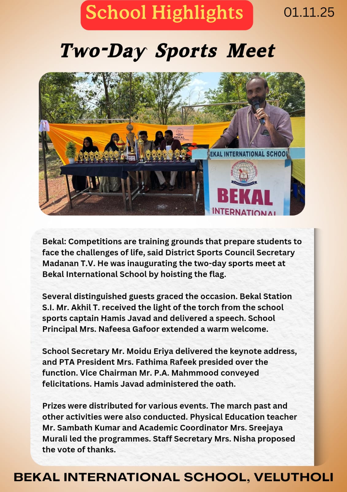 Bekal International School also known as BINS. The school was established in 2009. Bekal Internation